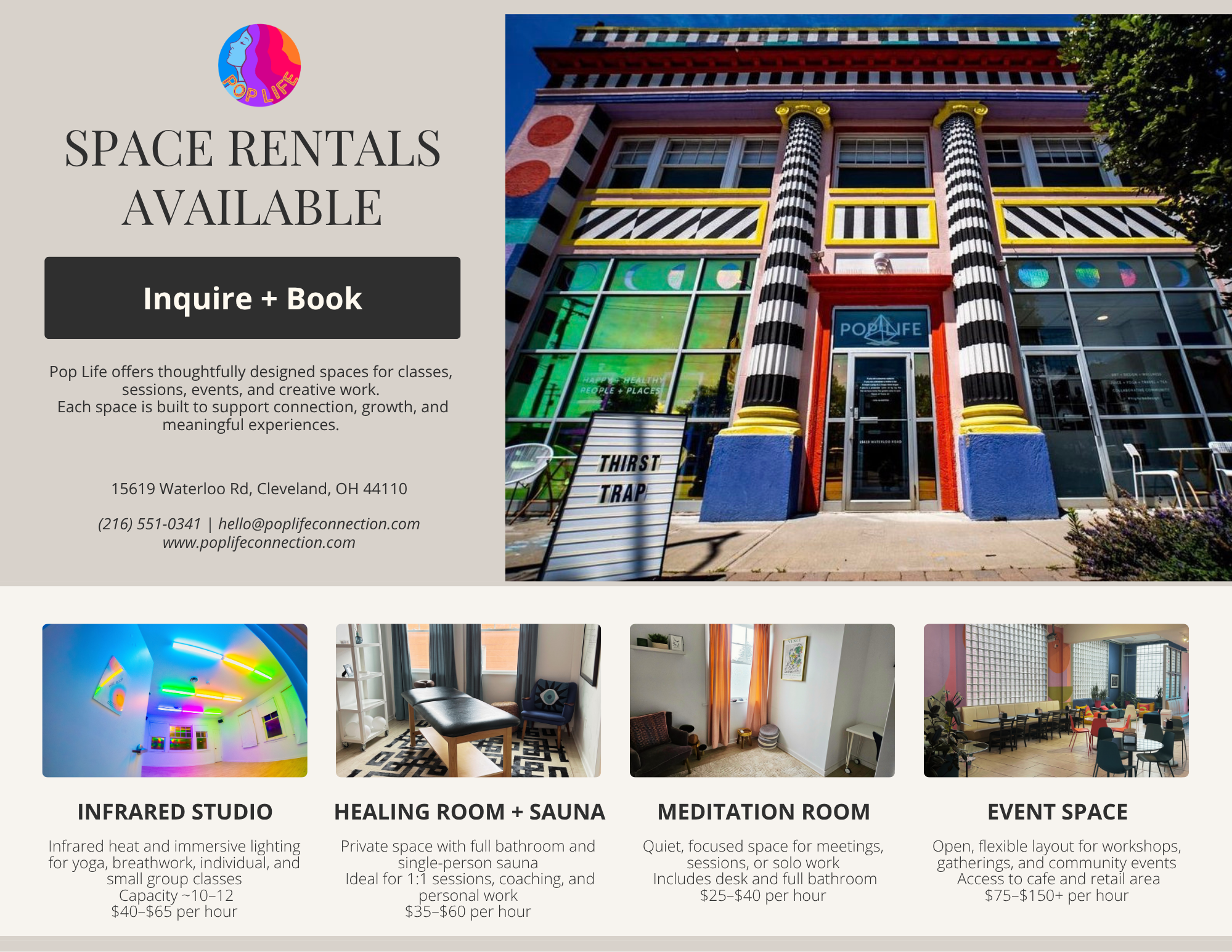 As a community-centered wellness space, Pop Life values collaboration and is dedicated to providing an inclusive and respectful environment. However, as an independently funded business with no external grants or public funding, we must prioritize sustainability. Due to frequent requests for free or low-cost events, we kindly ask that all proposals reflect the value of our time, resources, and mission. We are open to discussing mutually beneficial partnerships that support both our needs and yours.